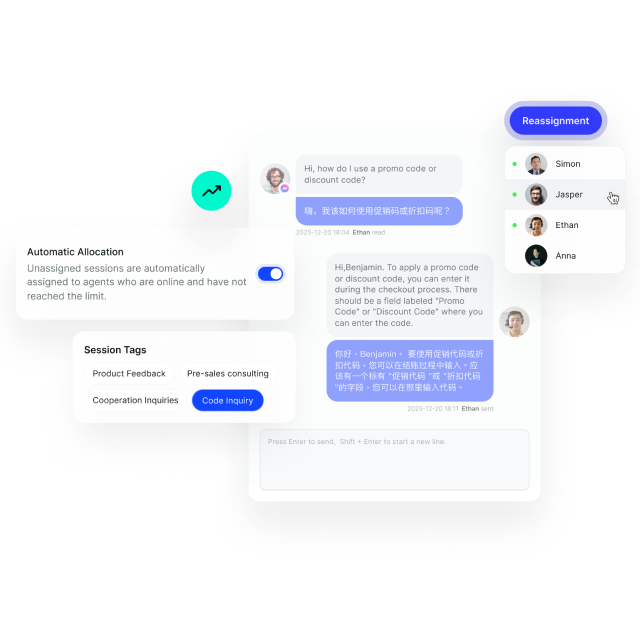SaleSmartly 聊天机器人可自动识别客户意图,触发对应回复流程。在繁忙时段仍能保证快速响应,让客户始终得到及时答复。